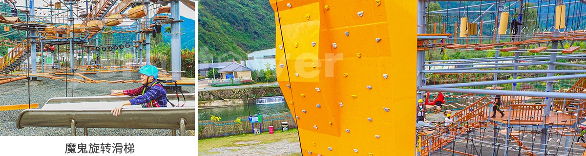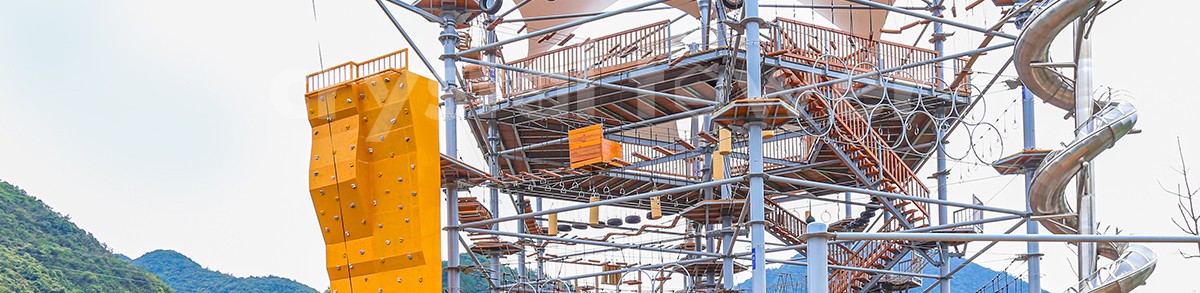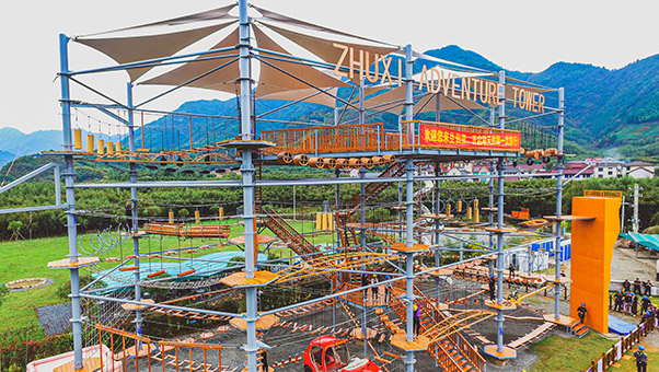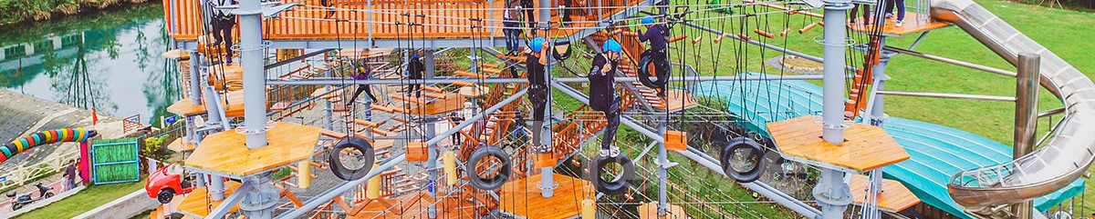 單層高達 4.3m,總高達 19.8m,內(nèi)部以晶體結(jié)構(gòu)搭建架空層 1-4 個步道層級,打造超過 680m 長的空中游樂路線,開模制作,國內(nèi)獨一無二,雙重保護更安全,利用防呆裝置做到安全萬無一失。其中包含 87 個運動項目(包含尖叫滑梯、巨形秋千、低空蹦極),能滿足 150 個游客同時進行冒險體驗,被譽為 " 運動游樂之王 "。
