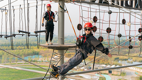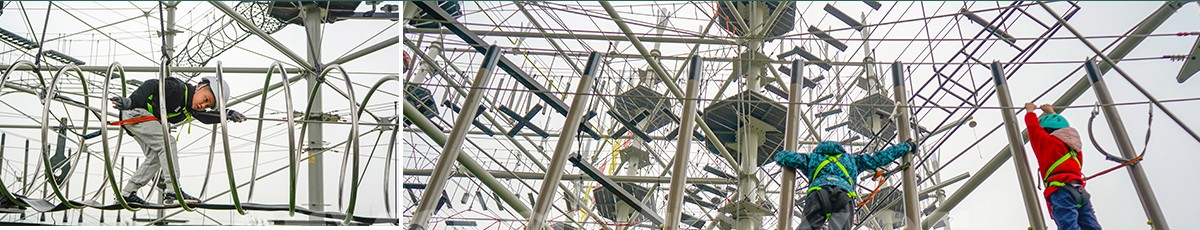 該設(shè)備為目前中國極具影響力的地標性運動游樂綜合體項目,可同時容納超 200 人,該水晶塔總高 29.8m,分為 6 層。適應(yīng)人群廣泛,可為周末休閑、文化體驗、團建社交、極限運動等核心需求者提供充滿幻想的新去處。節(jié)能六角形概念起源于晶體結(jié)構(gòu),每 4 根立柱為一個晶體結(jié)構(gòu),以此發(fā)展國內(nèi)獨創(chuàng)的水晶結(jié)構(gòu)塔,使“雙奧之城”成為北京的獨特名片。