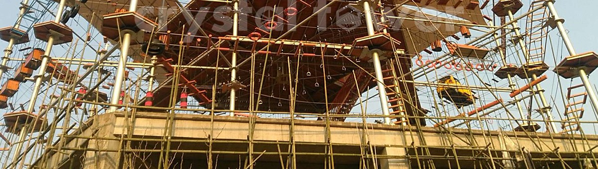 該項(xiàng)目是全國第二座水晶塔,總投資300多萬元,共分為3層,單層面積800余平方米,建成游樂面積2400多平方米,設(shè)備離地最高點(diǎn)為25.3米,能夠同時供160人玩耍。小金花水晶塔拓展項(xiàng)目,將運(yùn)動挑戰(zhàn)與戶外旅游緊密結(jié)合,在豐富游客休閑娛樂娛樂生活的基礎(chǔ)上,打造出全新的休閑娛樂模式。
