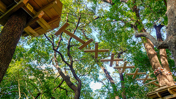 羅浮山景區(qū)叢林穿越,結(jié)合景區(qū)獨(dú)有的茂密叢林,結(jié)合爬、滑、游、跨、跳、飛等運(yùn)動(dòng),整個(gè)項(xiàng)目設(shè)計(jì)總長近 1km,分別設(shè)置了 3 個(gè)路線:兒童低空線、兒童線和成人線,可以同時(shí)滿足各個(gè)年齡段、各種規(guī)模團(tuán)體及個(gè)人的游客進(jìn)行個(gè)人挑戰(zhàn)、團(tuán)建、競賽等叢林穿越探險(xiǎn)活動(dòng)。