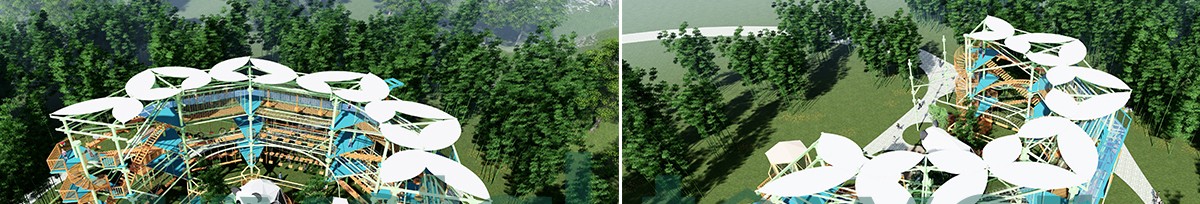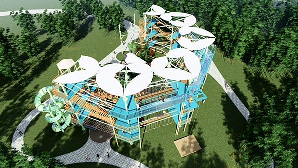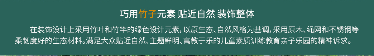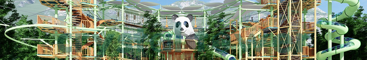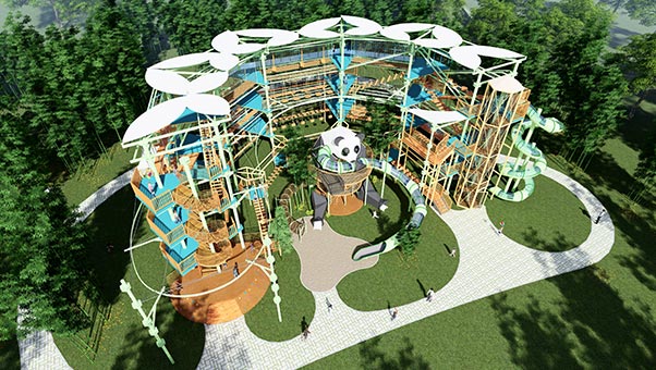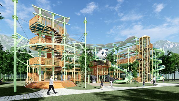 本項目適用于各種親子主題類的樂園,巧妙運(yùn)用“熊貓”IP造型設(shè)計,集拓展、探險、滑道、飛索、蹦極、不銹鋼滑梯、攀巖、爬網(wǎng)等 46 種不同運(yùn)動體驗的文化主題項目,結(jié)合“熊貓”IP 形象,融入相關(guān)設(shè)計元素,打造差異化的網(wǎng)紅 IP 主題性運(yùn)動探險營地綜合體。