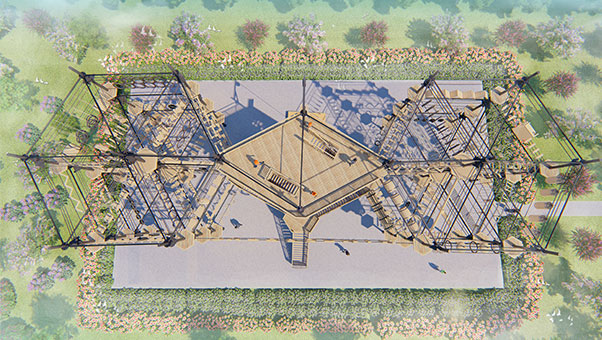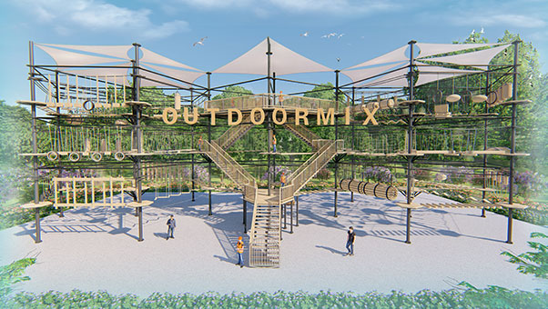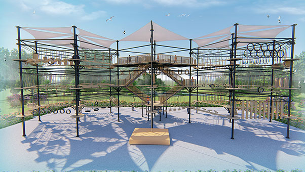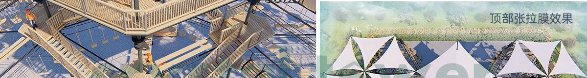 本項(xiàng)目建于戶外自然景區(qū)(亦可在室內(nèi)搭建),配置上百種運(yùn)動(dòng)健身、探險(xiǎn)互動(dòng)項(xiàng)目,項(xiàng)目游樂(lè)步道設(shè)有不同難度系數(shù)的項(xiàng)目供游客體驗(yàn),是景區(qū)中一個(gè)創(chuàng)新性、地標(biāo)性的立體娛樂(lè)綜合體。該設(shè)備占地面積達(dá)到650㎡,綜合用地面積達(dá)850㎡,單層高達(dá)4m,內(nèi)部以晶體結(jié)構(gòu)搭建架空層1-4個(gè)步道層級(jí),打造層超過(guò)600m長(zhǎng)的空中游樂(lè)路線。