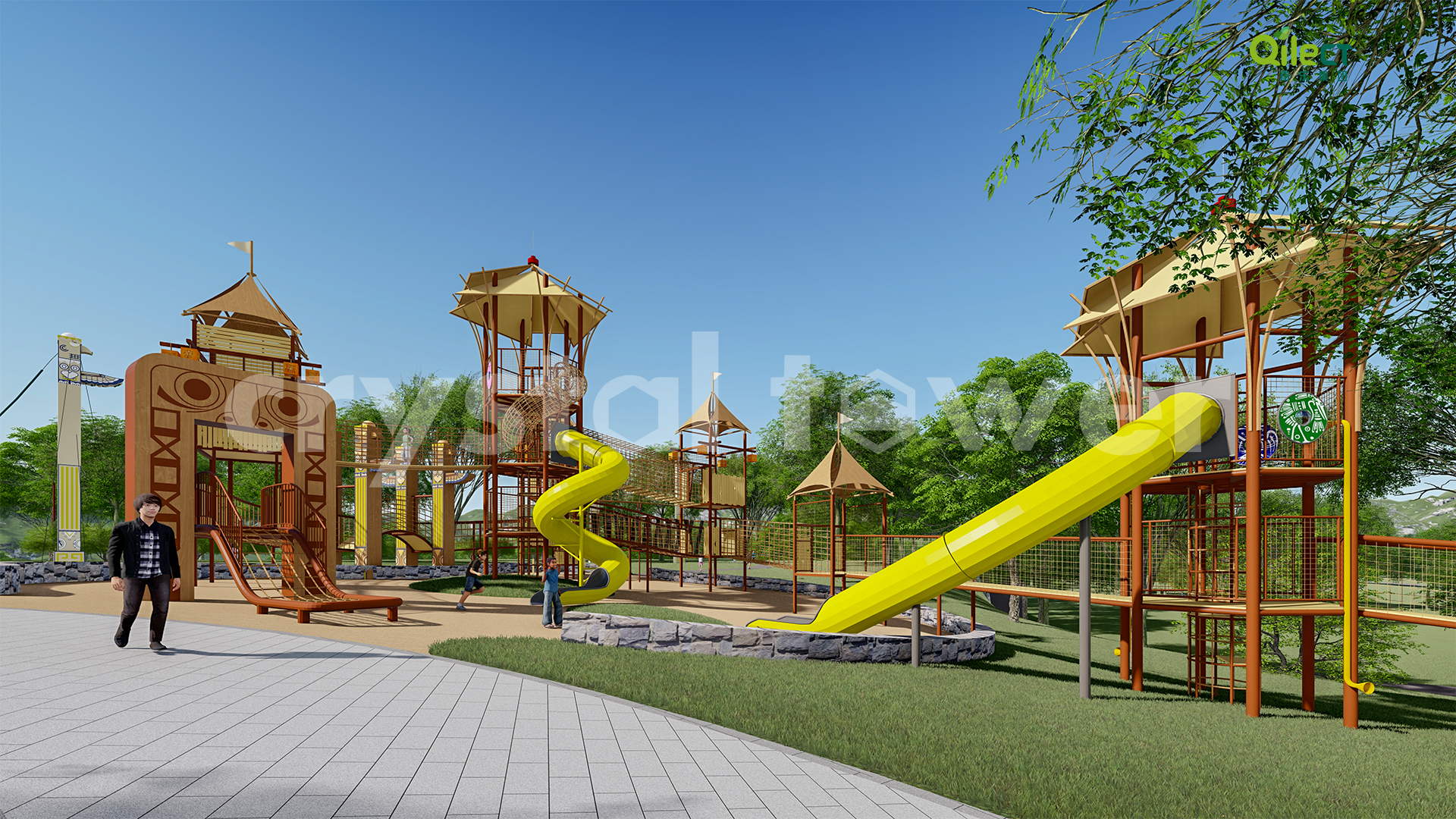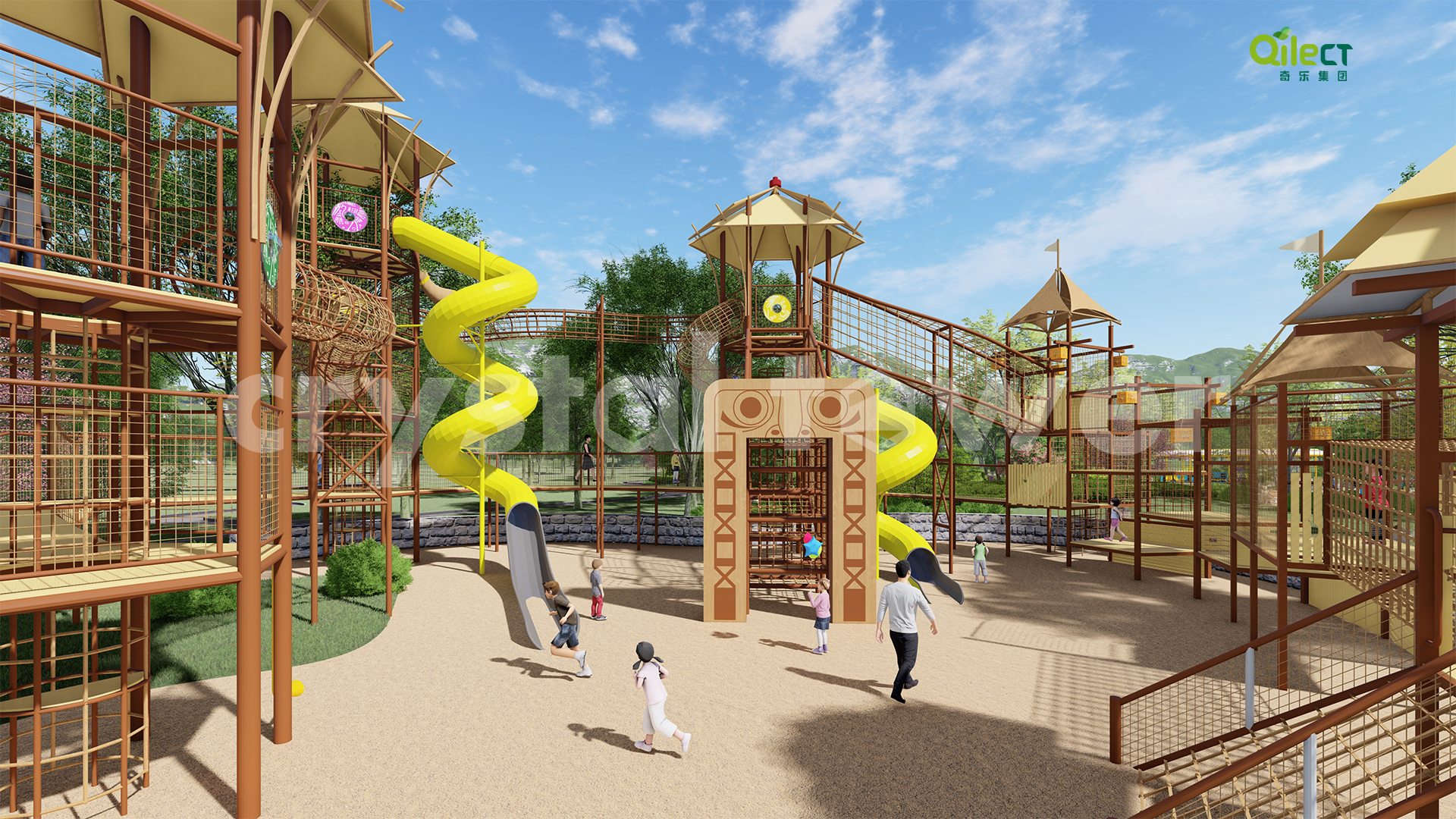 以瑪雅文化為主題風格,圍繞瑪雅部落、奪寶奇兵、瑪雅迷城及瑪雅城堡等布局功能區(qū)域,適合 3-15歲或親子類游玩者,全方位打造“休閑運動、親子娛樂、沉浸式 IP 體驗、戶外科普、生活素質(zhì)體驗”的親子游樂休閑度假目的地。