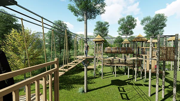 叢林穿越,結(jié)合景區(qū)獨(dú)有的茂密叢林,結(jié)合爬、滑、游、跨、跳、飛等運(yùn)動(dòng),從游客的感受和文化體驗(yàn)出發(fā),致力于設(shè)計(jì)和開發(fā)具有創(chuàng)新性的運(yùn)動(dòng)項(xiàng)目。以滿足不同游客的需求和興趣。我們?yōu)槊恳粭l步道設(shè)計(jì)了獨(dú)特的主題和路線,為游客營(yíng)造完美的感官體驗(yàn)。使游客在感官體驗(yàn)上得到升華,同時(shí)深入了解自然和文化的魅力。